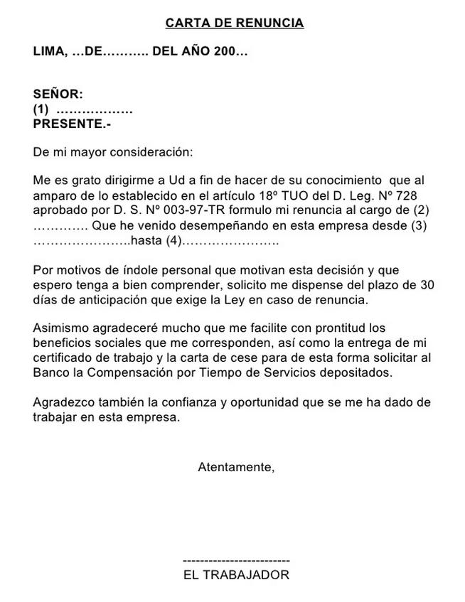 En ese caso y siempre que exista evidencia de ello, como es el caso de un audio o vídeo, el trabajador puede pedir a un juez que disponga la reposición o el porfavor que alguien pueda ayudarme, en la empresa que estoy me estan pidiendo que renuncie para que me puedan hacer un contrato directo. Respuesta de maría garcía, moderadora del. Fecha de despido o renuncia, la indicada en el telegrama en caso de existir. Muchas veces se cree que corresponde una indemnización por renuncia, pero esto no es así.