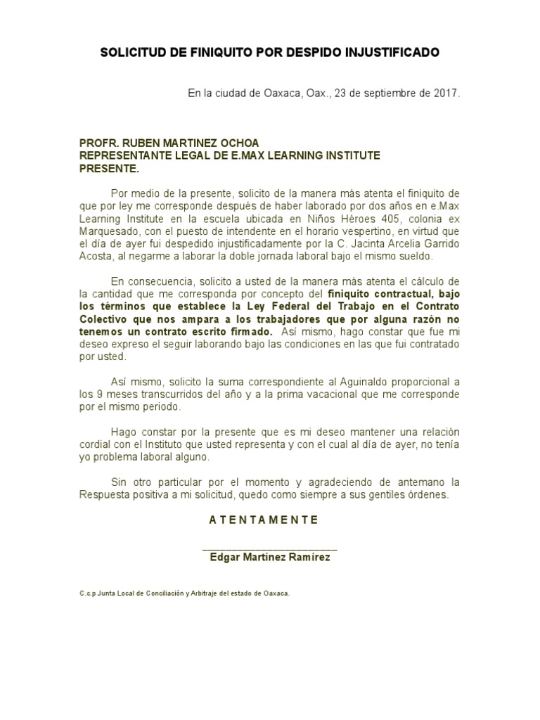 Me despidieron el 7 de septiembre y entre a trabajar el pasado 28 de julio, la semana pasada me regresaron a mi casa 2 dias y me castigaron dos dias mas, no fueron faltas injustificadas, esta semana me despiden sin justificaciòn me corresponde lo que marca la ley no?, ayudenme porfis. Ahora, ante esta situación el trabajador podrá solicitar ante la junta de conciliación y arbitraje (jca) en primer orden que se le reinstale en el trabajo bajo las mismas condiciones y puesto que. Qué hacer con un despido injustificado y en qué situaciones el trabajador tiene derecho a indemnización. La prima de antigüedad que me corresponde según el artículo 162 de la citada ley.